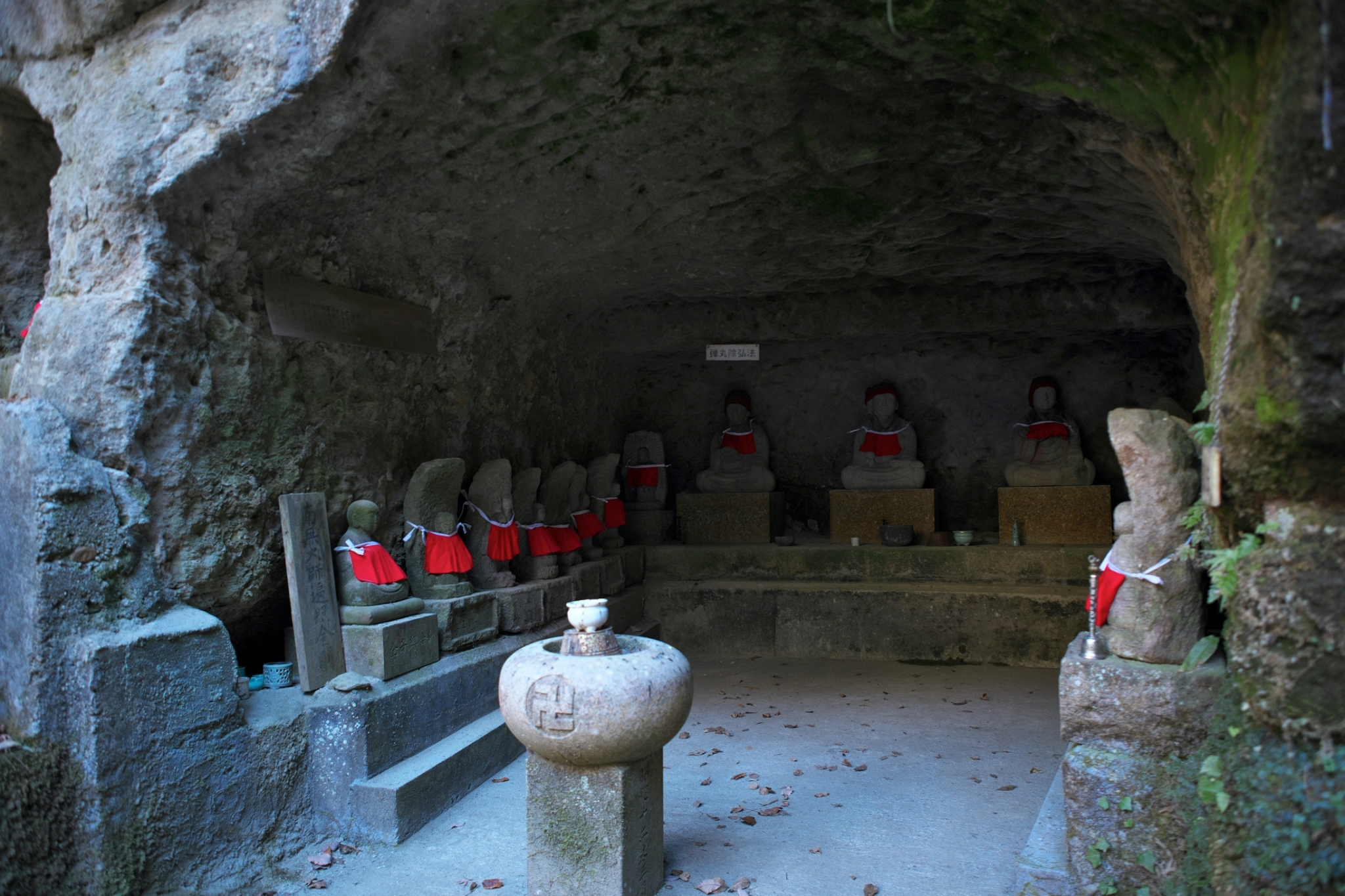 この地には104体もの石仏が安置されており、その多くが岩肌の穴に納められています。この独特の造りは、鎌倉時代の横穴式墓地「やぐら」に類似しており、戦国時代には土岐高山城の武将たちの墳墓が存在していたとも考えられています。