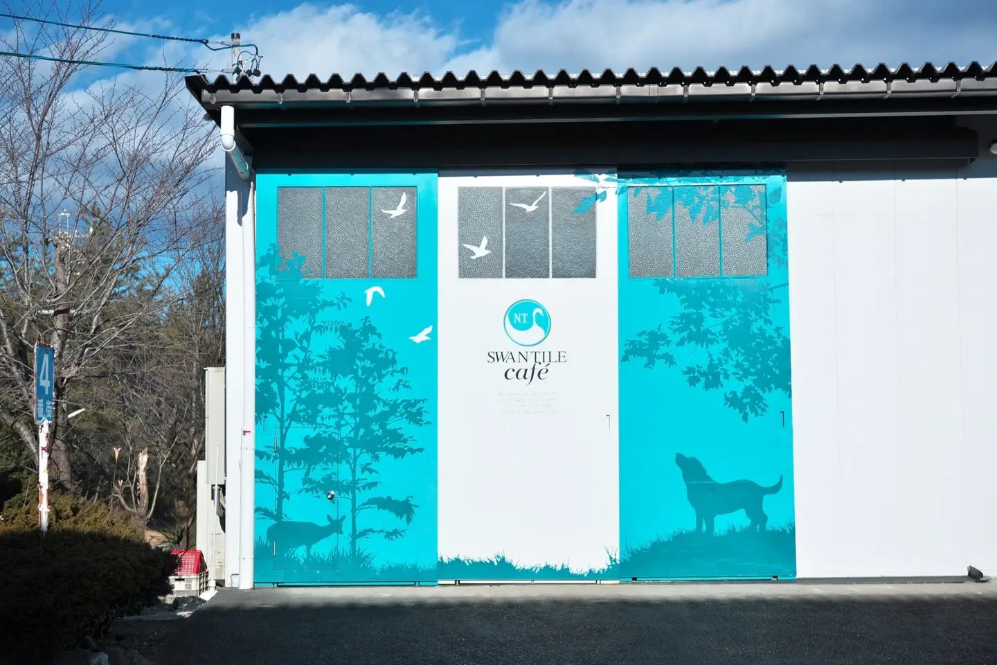 タイルメーカーの日東製陶所に隣接する「SWANTILE CAFE」の店内には、約14万個のタイルが使われており、タイルの世界観に浸りながらランチやお茶を楽しめます。SWAN工房では日東製陶所のタイルを使ったワークショップを開催しています。