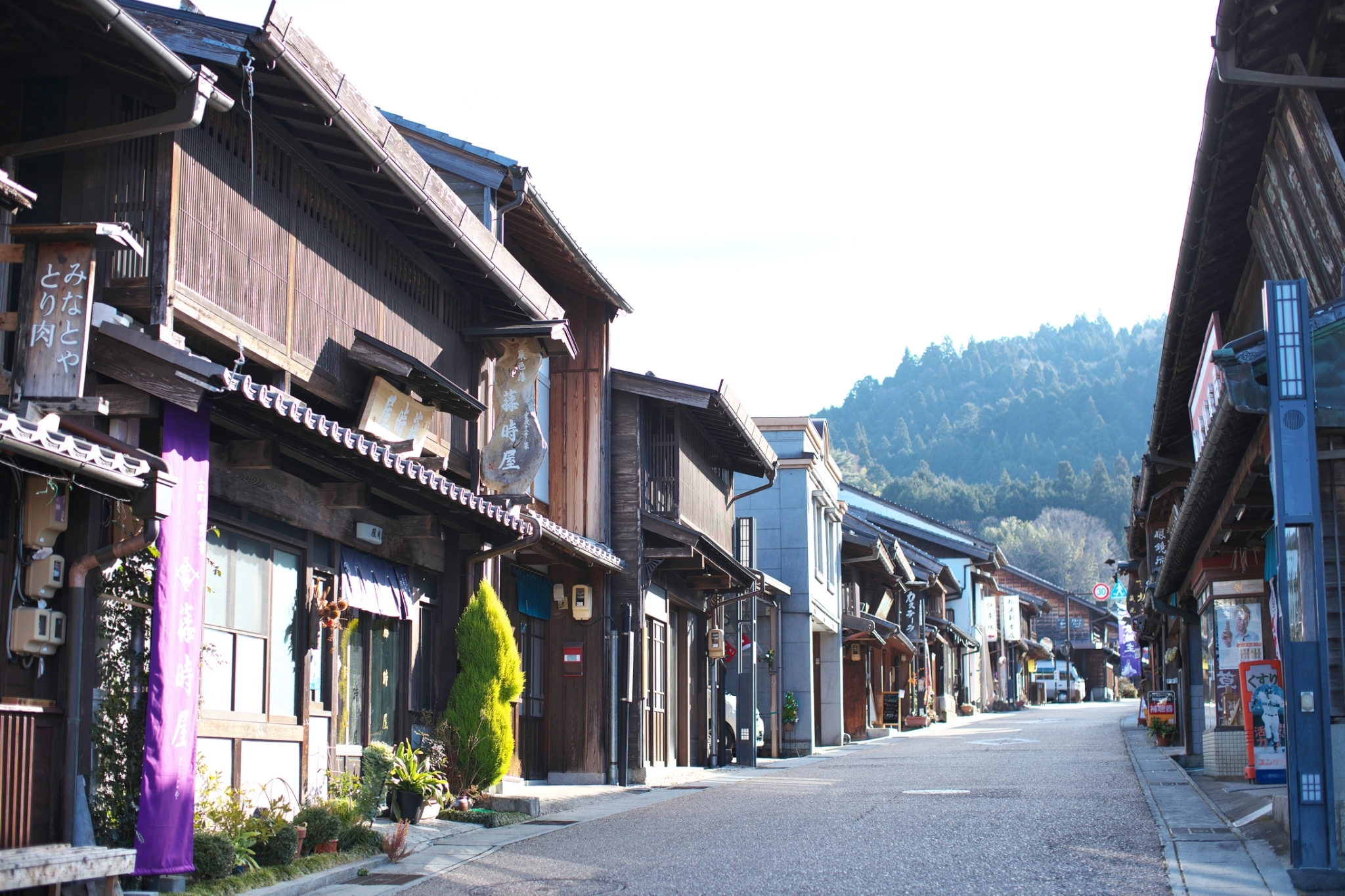 江戸時代には東濃地方の政治・経済・文化の中心として栄え、今も約1.3kmにわたる古い町並みが残されています。枡形や疎水、なまこ壁の建物が並ぶ景観は、1998年に「重要伝統的建造物群保存地区」に指定されました。