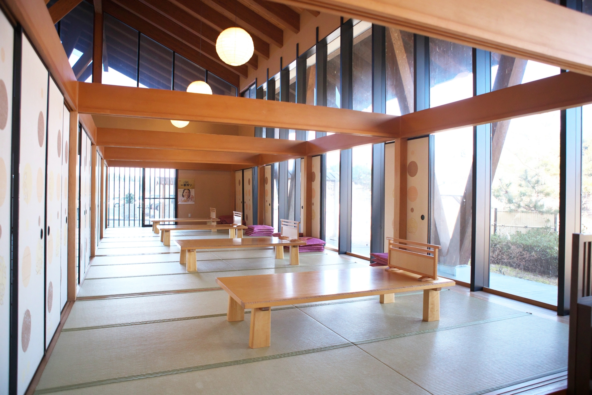 朴葉定食やけいちゃん定食など四季折々の料理を味わえるレストラン「もみじ茶屋」は、 一面ガラス張りで、自然豊かな曽木の風景を眺めることもできます。レストランのみ利用も可能です。