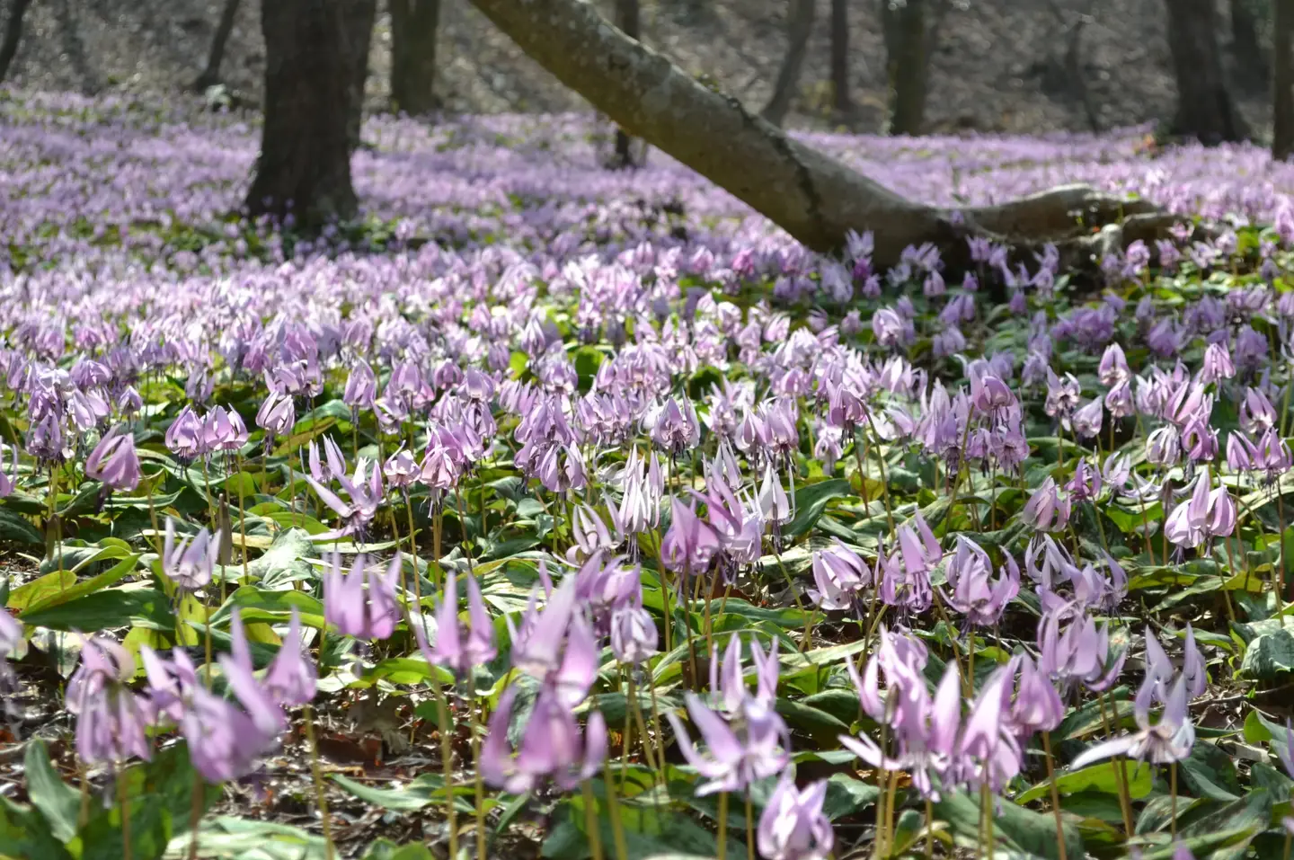 鳩吹山の麓に位置する可児川下流域自然公園では、3月下旬から4月上旬にかけてカタクリの群生地が広がっています。また、秋には300本を超えるモミジが一斉に色づき自然の美しさが堪能できます。
